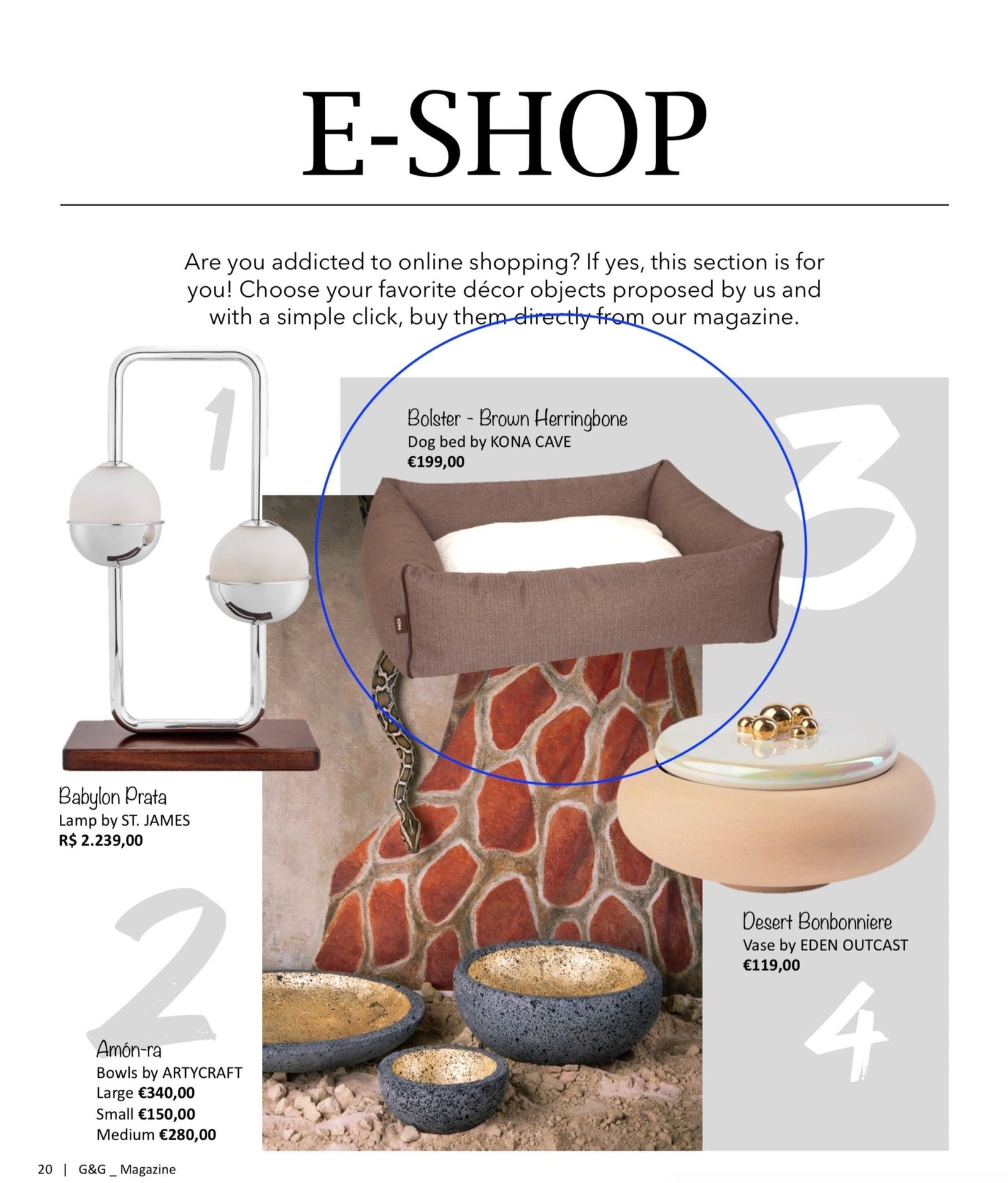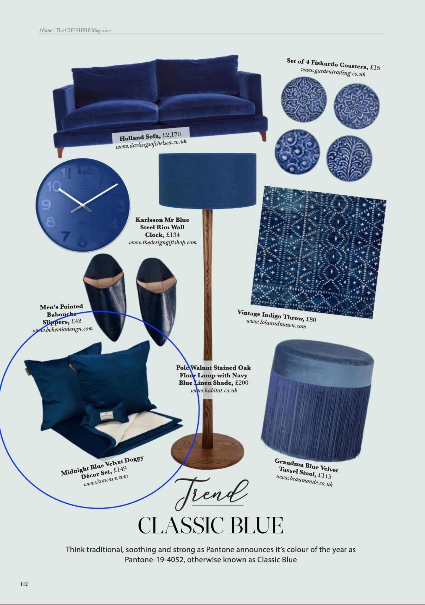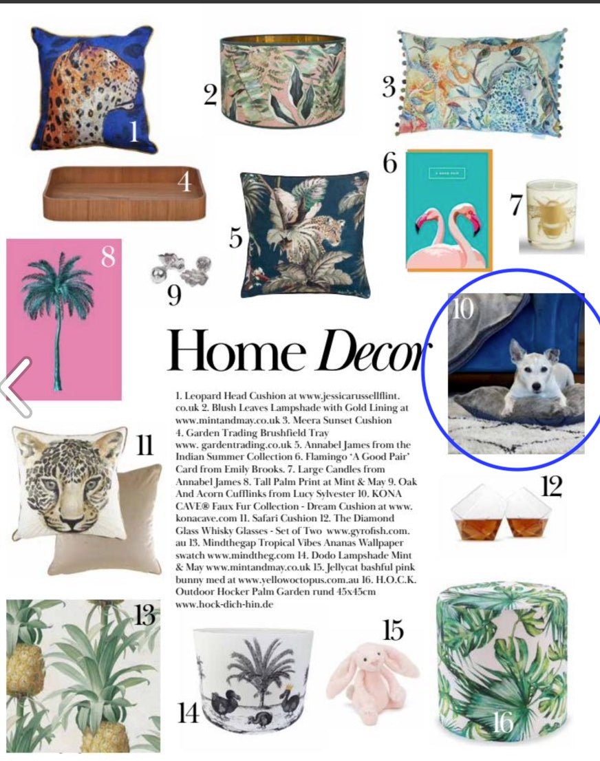 The KONA CAVE® Doggy Décor Sets featured in ELLE Italia Magazine.