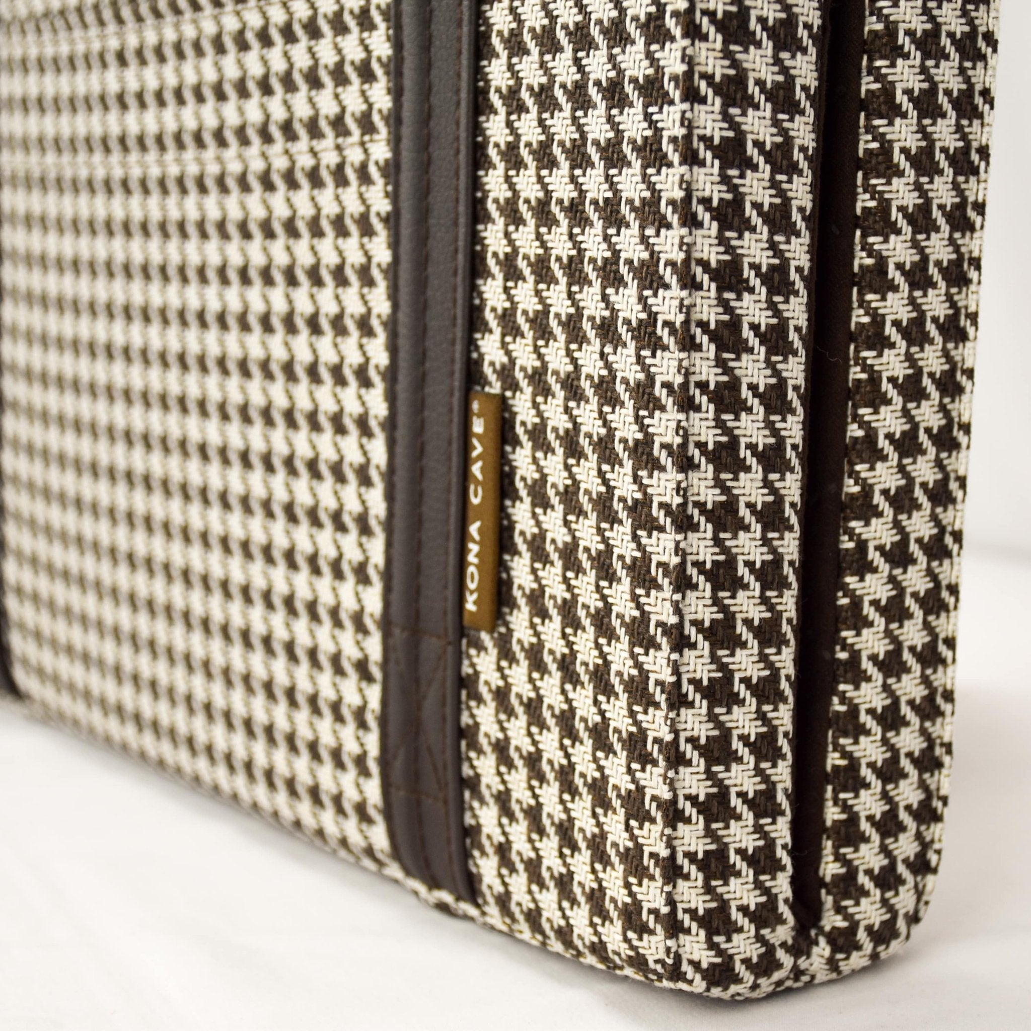 Travel Dog Bed - Brown and White Houndstooth with Ultra-Suede Lining